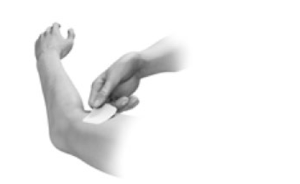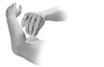 8. Press the patch down firmly with the palm of your hand for about 20 - 30 seconds to make sure the patch is touching the skin and that the edges stick well.