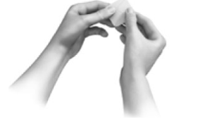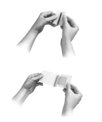 4. Bend the patch in half so that the S-shaped break in the liner opens.