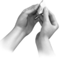 1. To open the sachet, hold the two sides of the sachet. Peel apart the foil and open the sachet.